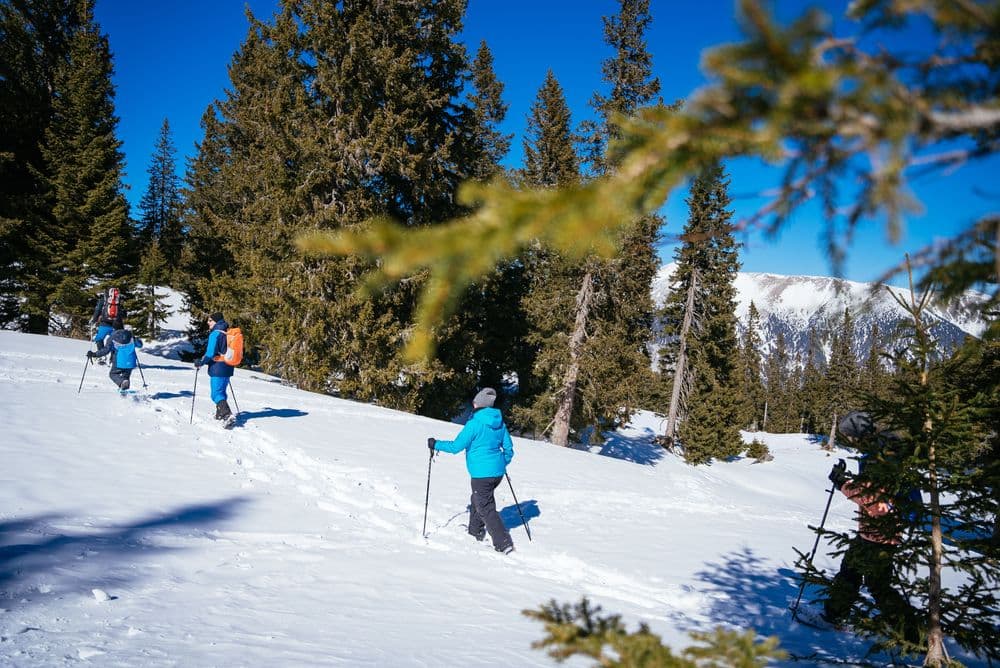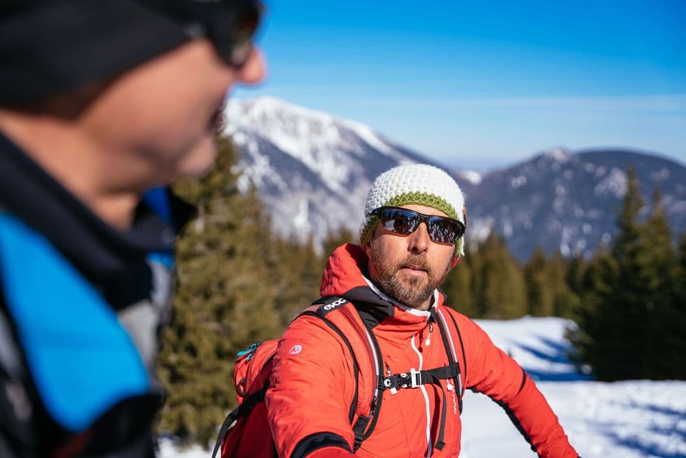 „Wir führen unsere Gäste sicher durch die alpine Landschaft, zeigen ihnen die schönsten Plätze abseits von Stress und Trubel.“ Denn eines darf man nicht außer Acht lassen: „Die Bergrettungseinsätze häufen sich von Jahr zu Jahr. Leichtsinn, Selbstüberschätzung, eine schlecht geplante Tour und die kürzeren Tage im Winter stellen die Einsatzkräfte immer wieder vor neue Herausforderungen, welche eigentlich vermieden werden könnten. Wir sorgen für Sicherheit auf unseren Touren und nehmen die Leute an die Hand.“ Um Druck und Ängste von vornherein zu vermeiden, teilt Wolfgang seine Gruppen beim Schneeschuhwandern gerne auf: „Es gibt eine flottere und eine gemütliche Abteilung, das hilft enorm. So kann jeder die vielen verschiedenen Stimmungen, die einem die Winterlandschaft präsentiert, in vollen Zügen genießen“. Und diese Landschaft darf ruhig auch mal bei Schlechtwetter erkundet werden, wie Wolfgang findet: „Wenn die Schneeflocken sanft vom Himmel tanzen, die Stille den Wald beherrscht und plötzlich scheue Wildtiere den Weg kreuzen, sind das Momente, die man sicherlich nicht so schnell vergisst. Man taucht vollends in diese magische Welt ein, darf die Zeit gerne mal vergessen und einfach nur genießen, den Rest übernehmen wir. Von der Organisation der Seilbahn, dem Ausrüstungsverleih sowie der Route liegt alles in unseren versierten Händen. Einzig die Outdoor-Kleidung muss vom Gast selbst ausgewählt werden, diese sollte natürlich wasserdicht sein und vor Wind und Kälte schützen.“