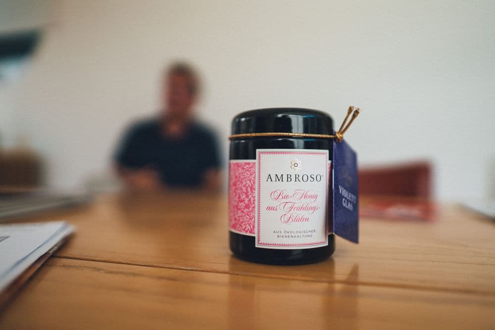 „Ich war fasziniert von diesen Lebewesen, hockte stundenlang vor den Fluglöchern und beobachtete das Gesumme. Es war wundervoll“, schwärmt Hannes. Seine Begeisterung für die Bienen und den Honig teilen sogleich auch seine Abnehmer, was ihn dazu veranlasste, aufzustocken. Aus vier Völkern wurden 45, eine ordentliches Corporate Design wurde erstellt, Fotoshootings veranlasst und der Ambroso-Honig war geboren.
