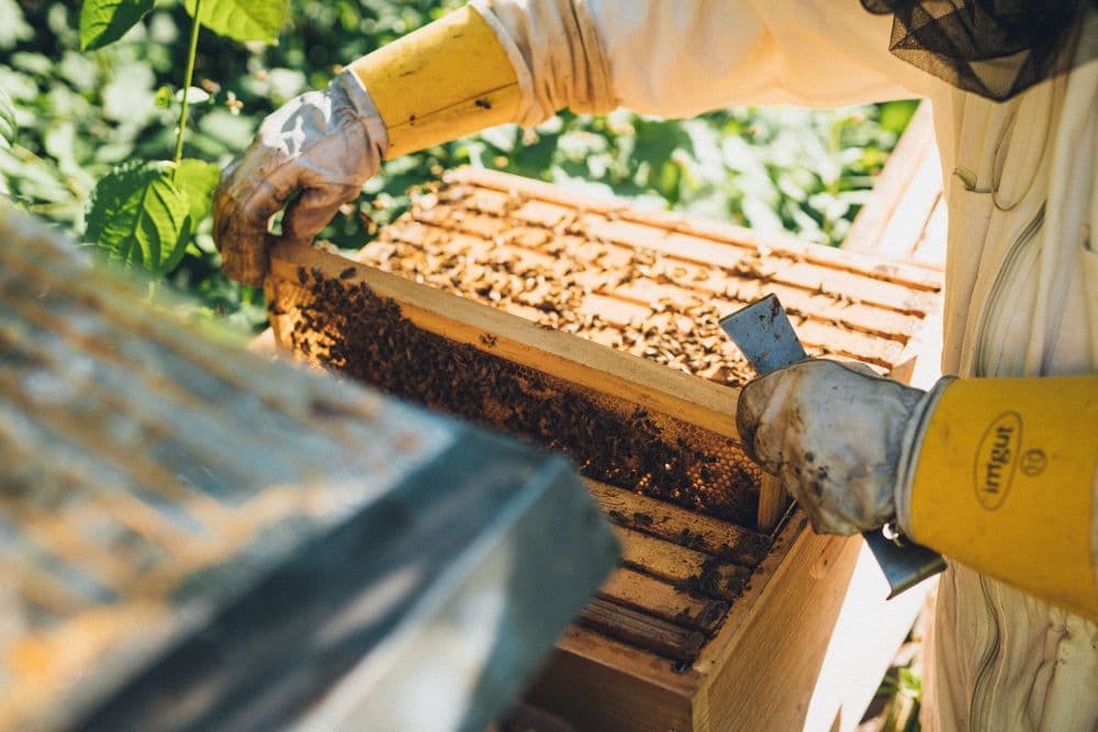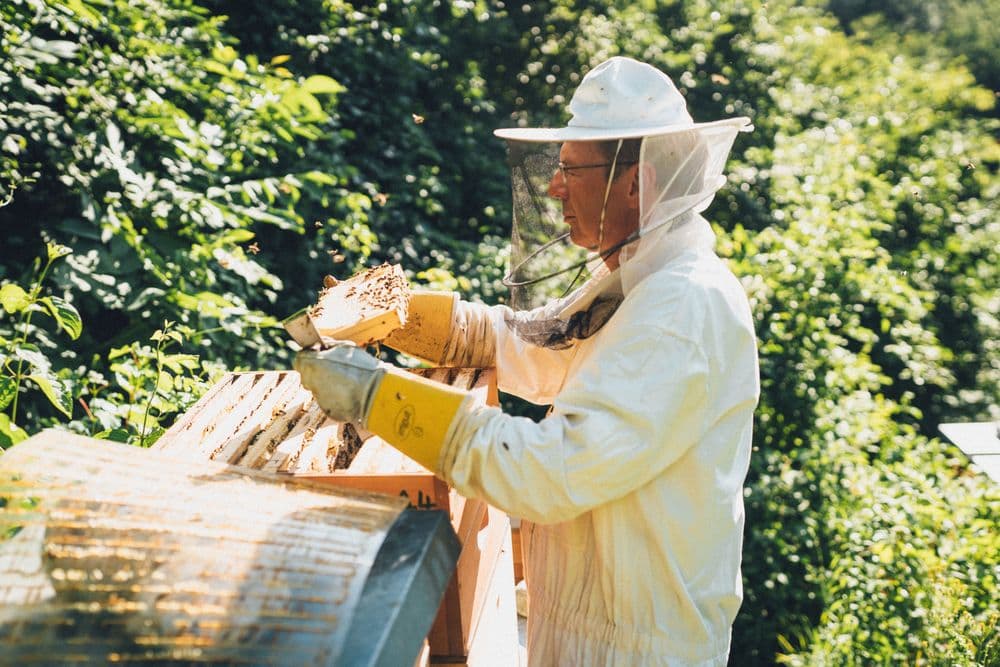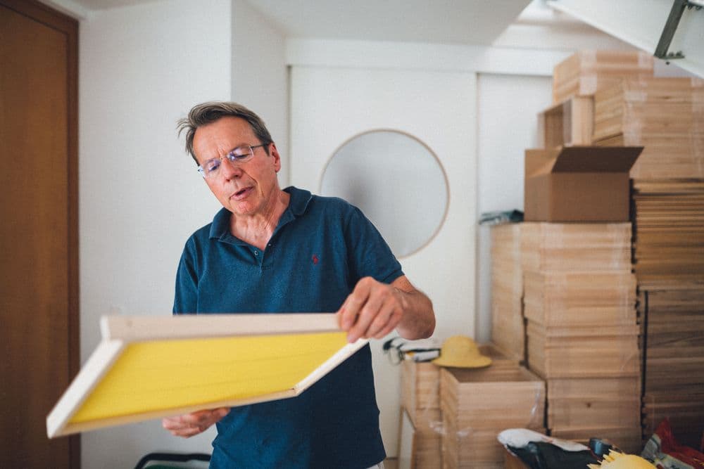 Das Imkern übers Jahr gesehen, beschränkt sich stark auf die Monate Mai und Juni: „Im Winter ist es ruhig aber man weiß nie, wie viele Völker im Frühjahr noch am Leben sind. Losgehen tut es dann im März, da versuche ich den toten Fall zu entfernen und zu reinigen. Jeden Tag kommen in einen Bienenstock bis zu 2000 Bienen auf die Welt und jeden Tag sterben auch sehr viele. Die Aufwärtsbewegung eines Bienenstocks im Frühling zu erleben, das ist schon unglaublich.“ Vom Ernten zur Paketaufgabe macht Hannes alles selbst. „Bei der Ernte hilft meine Partnerin.“