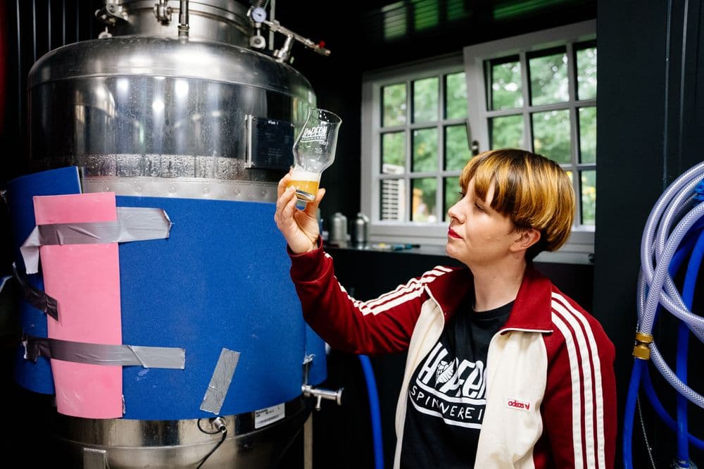 Aus dem anfänglichen Jux wurde bald eine richtige Leidenschaft, die sie ihren Job als Journalistin und Marketingexpertin an den Nagel hängen und beruflich vollends ins Braugeschäft einsteigen ließ. An den entscheidenden Moment kann sie sich noch gut erinnern: „Ich saß abends im Garten bei meinem Feierabendbier, studierte gedankenverloren das Etikett und stolperte über die berühmten drei Zutaten für das Getränk. Da kam mir die Idee, dass ich das doch selbst mal ausprobieren könnte.“ Gesagt, getan. Am nächsten Tag war ihr Auto bereits beladen mit dem notwendigen Brau-Equipment und anstatt große Urlaubsreisen zu planen, investierte Evelyn ihre Freizeit lieber in die Ausbildung zur Biersommelière. Auf privaten Veranstaltungen war sie ein gern gesehener Gast, hatte sie doch immer das richtige Geschenk in flüssiger Form parat. Denn ihr Bier schmeckte Freunden und Familie von Anfang an:„ Ich bin eine neugierige Biertrinkerin. Als ich 2010 damit angefangen habe, gab es im Supermarkt noch nicht so eine große Auswahl, wie beispielsweise in Belgien. Bei uns in Österreich wird hauptsächlich Märzen getrunken, ich hingegen wollte mit Zutaten experimentieren.“ Aus dieser Spinnerei entwickelte sich 2017 die ausgewachsene Geschäftsidee zur Hopfenspinnerei. Der Start der Brauerei erfolgte in der Nähe von St. Pölten, wo Evelyn mit ihrem Partner in Crime, ihrem französischen Lebensgefährten Gwaël Gauthier, eine Brauerei anmietete. Bereits ein Jahr darauf konnte sie den Staatsmeistertitel für die Biersorte Georg Ludwig, ein Lavendel-Limetten-Ale einheimsen.