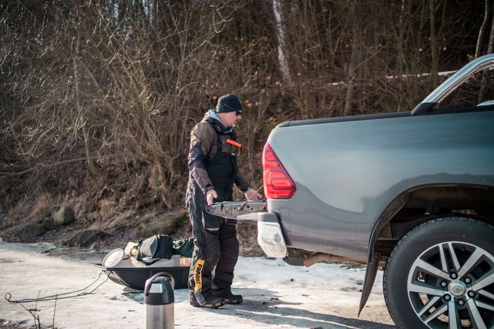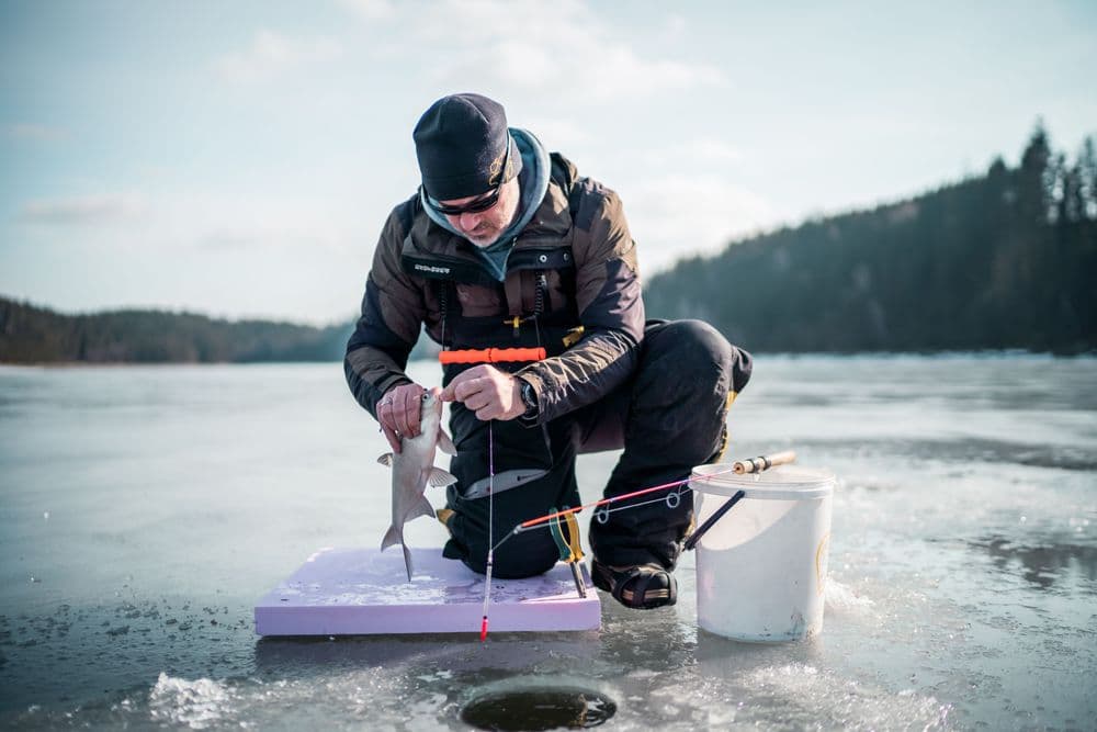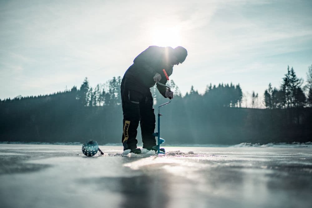 Ob Anfänger oder Profi, die tagesfüllenden Programme stimmt Bernhard individuell auf die Gruppe ab. Nicht die Anzahl der gefangenen Fische steht im Vordergrund, sondern das Erlebnis an sich und das Vertrauen, dass man der Sache entgegenbringt. Neben den erlernten Techniken ist es Bernhard zudem ein Anliegen, seine persönliche Botschaft zu vermitteln: „Wir müssen nachhaltig mit den vorhandenen Ressourcen umgehen. Werbung zu machen ist einfach, die Schwierigkeit steckt vielmehr darin, ein vernünftiges Level in wirtschaftlicher Hinsicht zu erreichen und zu halten. Die Qualität darf nicht darunter leiden. Es würde keinen Sinn machen, unzählige Steganlagen zu errichten, der Stausee wird dadurch nicht größer. Nur der Verkehr würde wachsen.“ Was hingegen mit Sicherheit wächst, ist im Winter das Eis. Hat dieses eine tragfähige Dichte erreicht, zieht es Bernhard und seine Gäste zum Eisfischen hinaus auf den gefrorenen See. Mit Spikes an den Schuhen, einer Eiskralle zur Sicherheit sowie der üblichen Anglerausrüstung, welche nun um einen Handbohrer erweitert wird. Zum Loch bohren. „Zu dieser Jahreszeit stehen andere Fische im Vordergrund, Weißfische wie beispielsweise die Braxe. Alles ist dann um ein Ticken ruhiger und still, das Angelerlebnis an sich ein völlig konträres zu dem im Sommer. Einzigartig.“