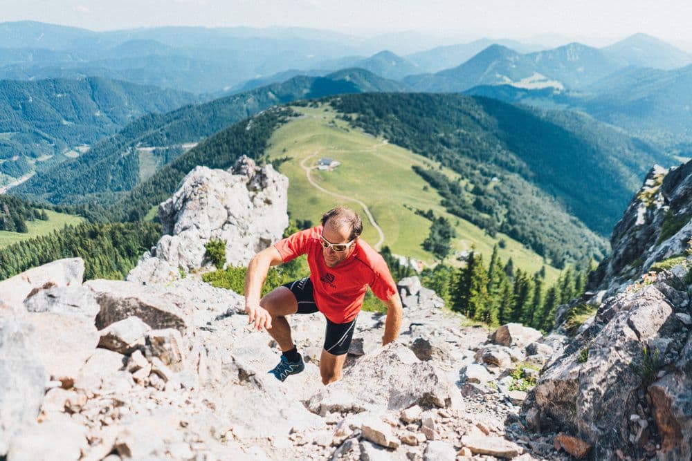 Der Schneeberg, mit 2.076 Metern der höchste Berg Niederösterreichs, bietet meist gute Verhältnisse: „Wir können fast das ganze Jahr hier Wandern, Laufen und Radfahren, aber auch zum Klettern ist die Region ideal. Die Kollegen in Tirol, die in einem Hochtal sind, haben hingegen nur ein paar Monate, wo die Bedingungen top sind. Im Winter kann man bei uns die trockenen, südseitigen Felsen zum Klettern nutzen, im Sommer begibt man sich einfach in etwas höhere Gefilde. Wir haben sehr viele Möglichkeiten auf kleinem Raum, das macht den Reiz für mich aus.“ Natürlich haben ihn aber auch Abenteuer, wie die Besteigung des Ama Dablam, einen 6.814 Meter hohen Berg im Himalaya, geprägt. „Die Höhe hat mir schon etwas zu schaffen gemacht.“ Gemeinsam mit seiner Mutter stand er am Gipfel des Elbrus auf 5.642 Metern Seehöhe, ein ergreifendes Gefühl für ihn. „Die Sehnsucht nach solchen Fernreisen wird sicher wiederkehren, momentan stimmt für mich jedoch die Mischung.“