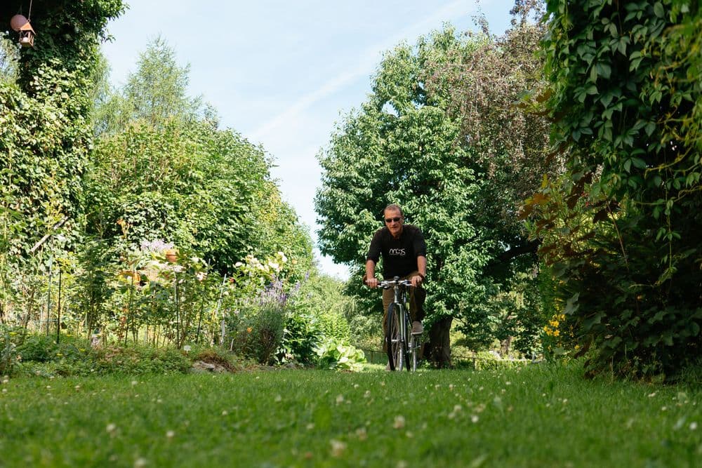 Seinen Traum vom Landleben erfüllte er sich um die Jahrtausendwende. Zeitgleich sattelte er beruflich um. „Jeden Tag vor dem Computer sitzen und Mails abarbeiten, das war auf Dauer nicht mein erklärtes Ziel. Ich wollte schlicht und einfach nicht mehr.“ Eine Zeit des Ausprobierens folgte. Als ihm eines Tages ein Buch über einen Radfahrer in die Hand fiel, der die Entstehungsgeschichte seines Traumrades beschrieb, fiel es ihm selbst wie Schuppen von den Augen: „Das ist es, was ich machen will. Jetzt hab ich es gefunden.“ Dank eines erfahrenen Rahmenbauers erlernte Peter die Technik und stellt seitdem Spezialanfertigungen für seine Kunden her. Seine Erfahrung als Grafikdesigner kommt ihm bei der Planung zugute: „Die Konzeption eines Rades findet zu einem guten Teil auch am Computer statt. Damit in Verbindung steht das tatsächliche Handwerk in der Werkstatt. Nun hab` ich beides.“