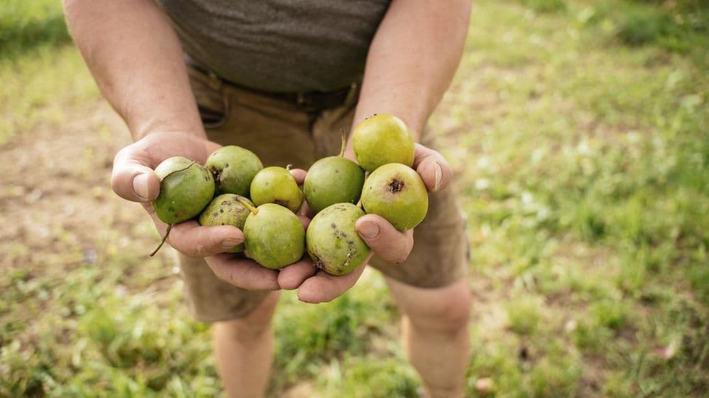 Geerntet wird per Handarbeit wie schon vor 100 Jahren. „Fallobst pflückt man nicht, man wartet, bis die Früchte von selbst am Boden landen. Der Vorteil ist, dass die Birnen dadurch garantiert reif sind, was für den Geschmack wichtig ist. Der Nachteil besteht in partieller mikrobiologischer Verunreinigung. Dies ist in der Verarbeitung eine Herausforderung, wir versuchen aber, so wenig als möglich einzuwirken, um dem Obst seine Seele zu lassen.“ Der Trend geht in Richtung Natural Wines, also die natürlichen Gerbstoffe sollen weitestgehend erhalten bleiben, überhaupt greifen wir so wenig wie möglich ein. Daher wird teilweise auch unfiltriert abgefüllt. Zeit spielt ebenfalls eine große Rolle: „Wir produzieren keinen Jungmost, sondern lassen den Most über ein Jahr zur Reifung im Fass. In jeder unserer Sorten kannst du den Verlauf des Erntejahres schmecken. Gab es viel Sonne, hat es viel geregnet, konnten die Birnen gut gedeihen, ist der Baum gesund?“